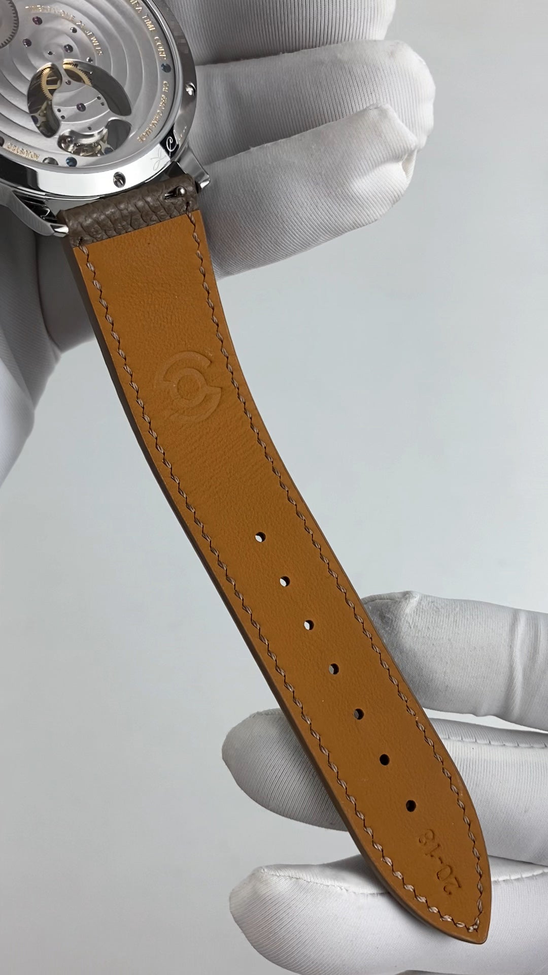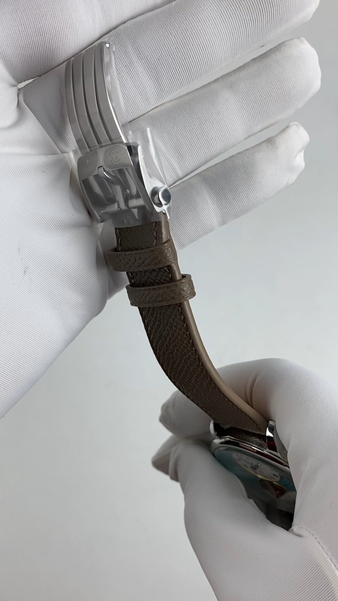 Khaki. Cowhide leather. Quick release: Remove strap from case without tool. Fit for case lug width: 20 mm. Fit for clasp lug width: 18 mm. Clasp: Pin buckle & fold-over clasp. Stainless steel clasp.