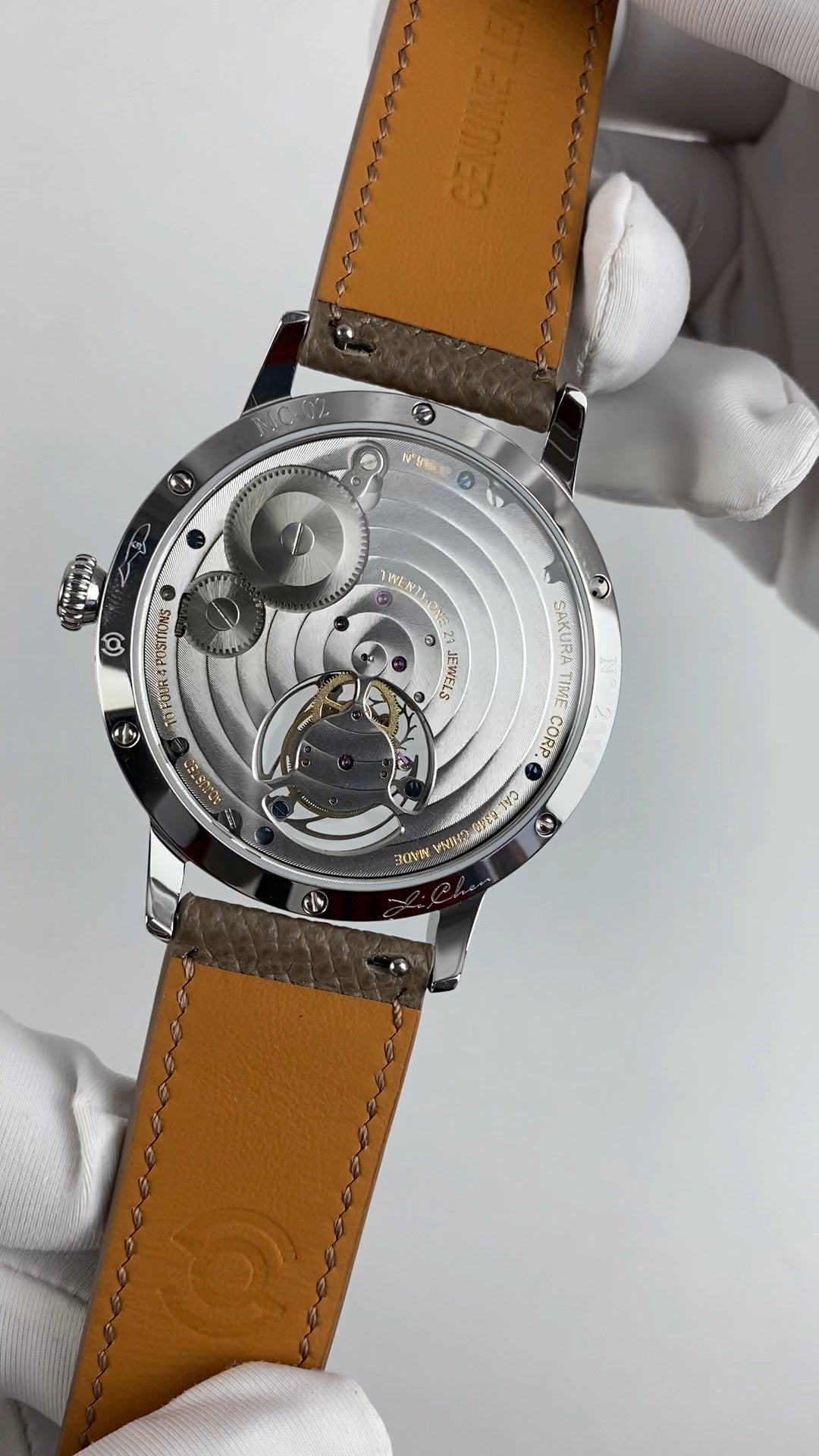 Mechanical, manual-winding. Tourbillon. China Made. Caliber: Sakura 6340. Functions: Hour, minute (Hour and minute hands at 12 o'clock. The tourbillon module turns 60 seconds per round which can be used as the seconds hand.). Jewels: 21. Frequency: 28800 vph. Power reserve: Around 40 hours.