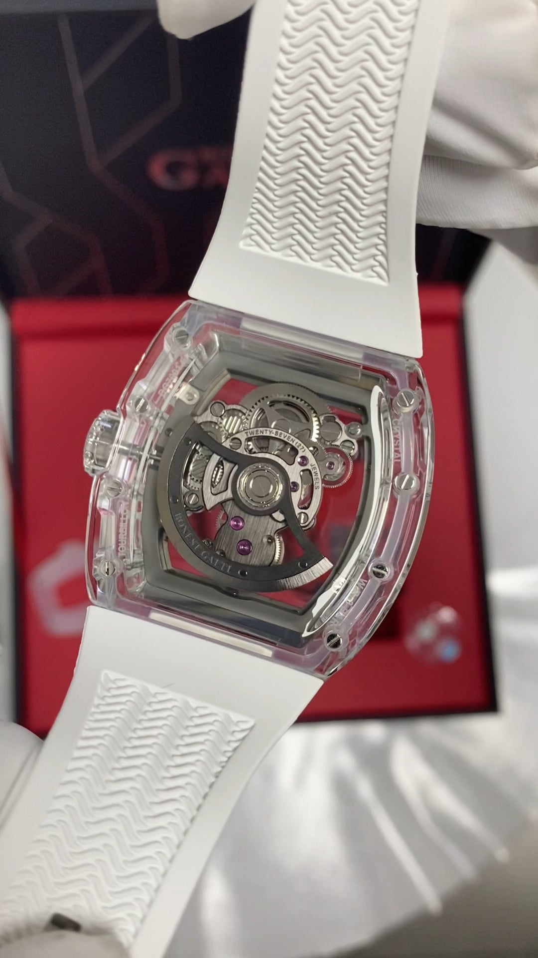 Mechanical, self-winding. Tourbillon. China Made. Functions: Hour, minute. Jewels: 27. Frequency: 28800 vph.